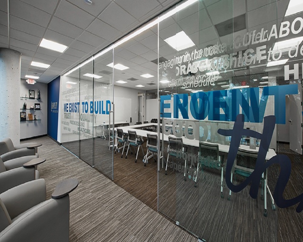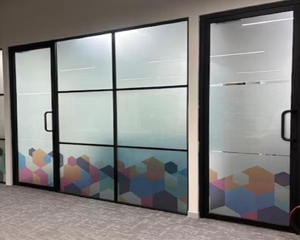 2. Glass Partition Branding With Frosted & Designer Films