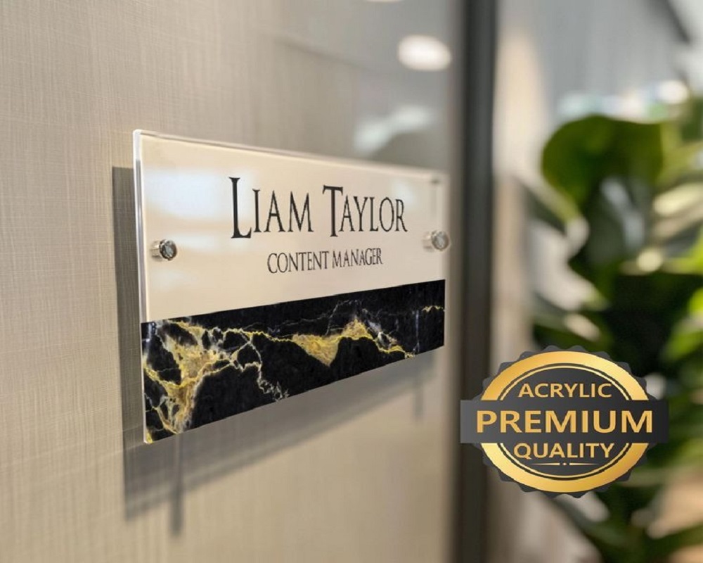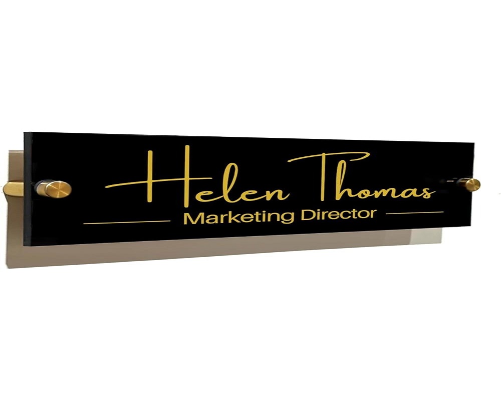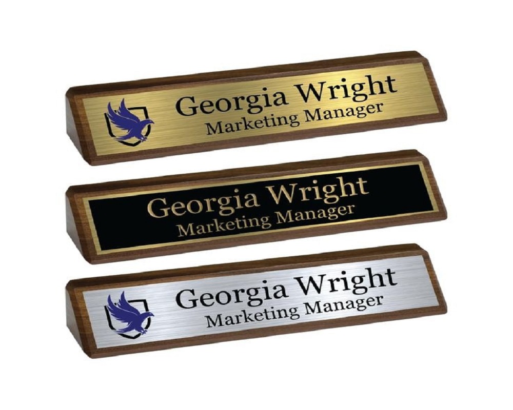 Personalized nameplates create a sense of belonging and reflect a well-structured, organized corporate environment.